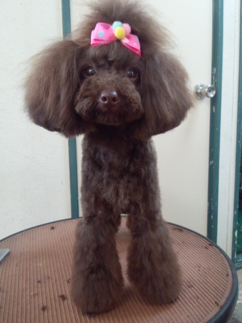 ぴょんぴょんとトリミングテーブルまで上がりました。