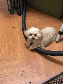 掃除機のホースの上に前足を置いて休んでたのが可愛かったです♪