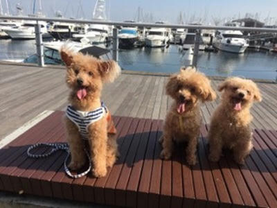 一緒に生まれました兄妹犬のアキレスくん、あんず、りんご。