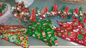 クリスマスのリボン、バンダナ、シュシュ、入荷いたしました。