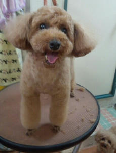 トリミング途中のつぶ太くん♪