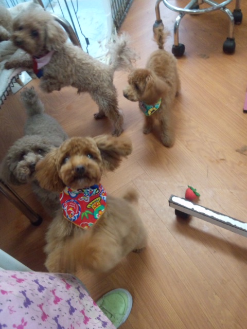 トリミングしていると、家族のレアちゃんとラニちゃんが心配そうに見ていて、たまにアウアウ~言ってます。(^-^)/
